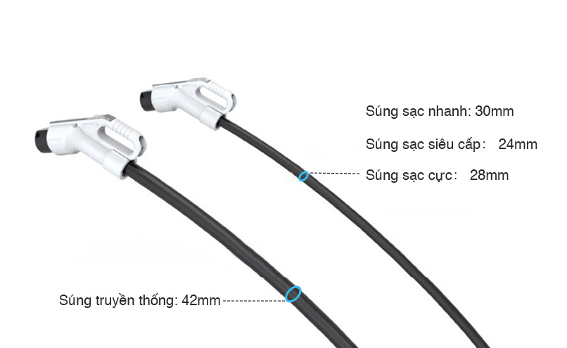 Dây súng đầu cuối sạc điện nhẹ hơn, mềm hơn, dễ dàn g cho khách hàng nữ thao tác nhẹ nhàng bằng 1 tay, trang bị màn hình cảm ứng màu, giúp người dùng thao tác nhanh chóng và chuẩn xác, nâng cao hiệu suất tương tác người-máy và trải nghiệm cho người dùng.